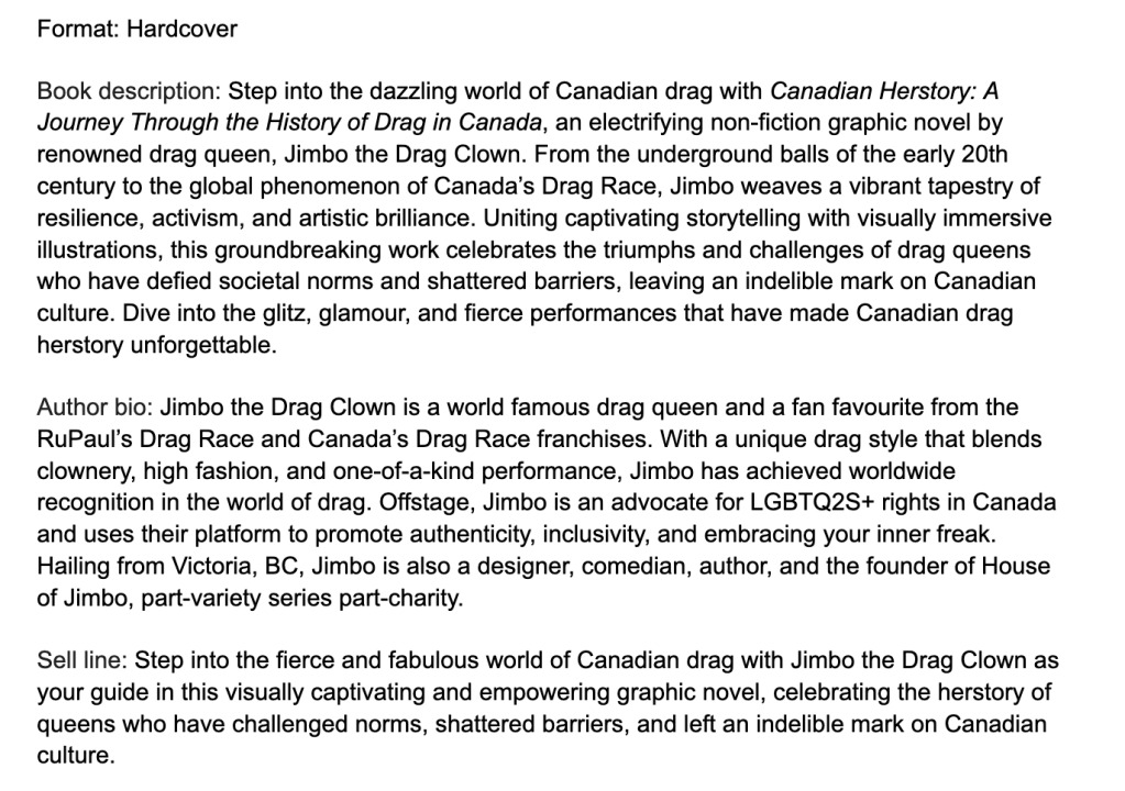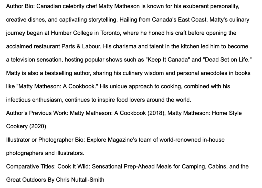 The following are two different TI Sheets I’ve made for mock book proposals during my Publishing Certificate—one cookbook and one graphic novel.